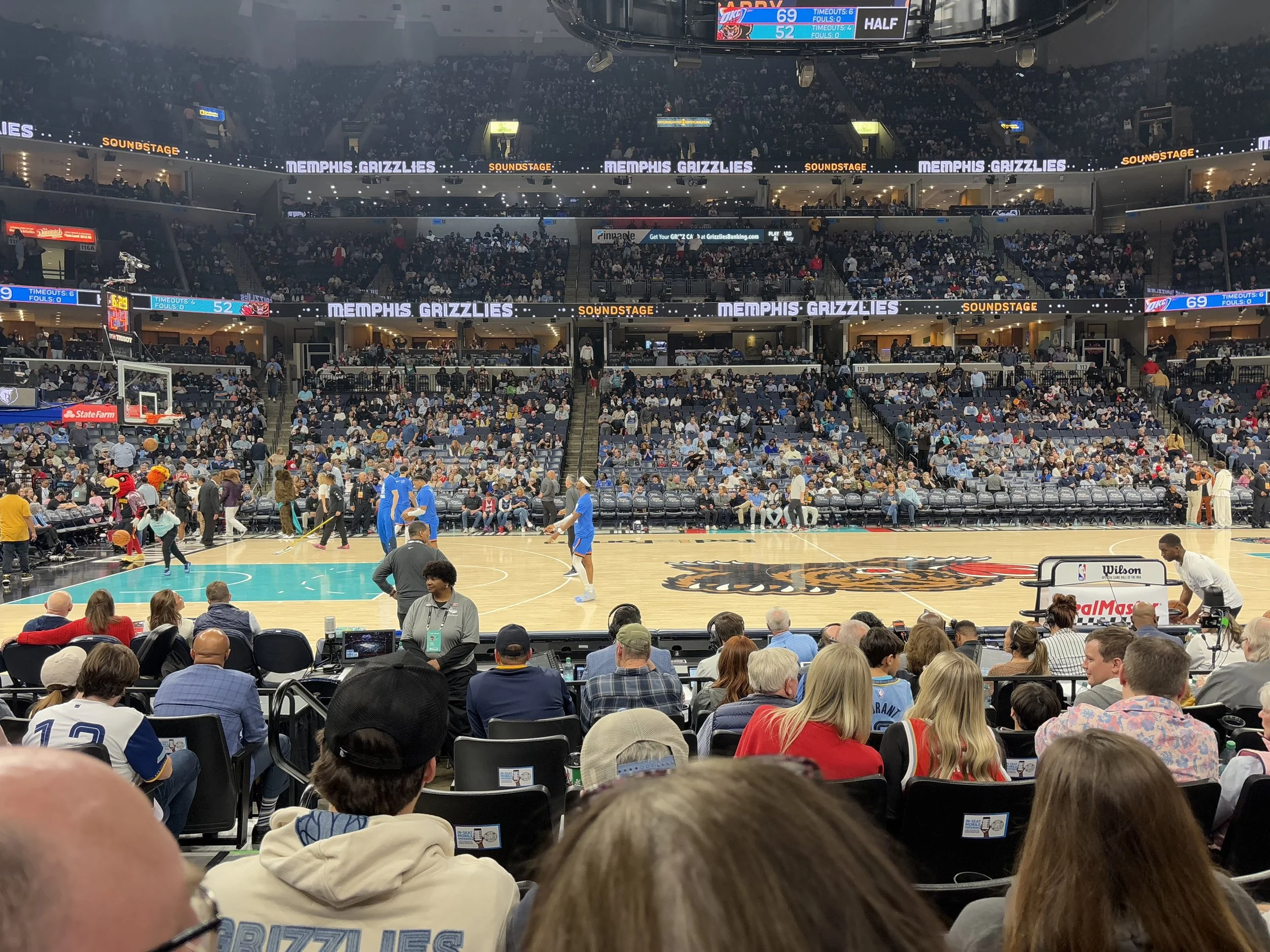 Evan and I sat in 3 different sections during this game. For the first half, we sat up in the nosebleeds and were surrounded by NBA casuals where one guy claimed “flagrant fouls used to give you four free throws.” After half time, we found some first-level seats that were open for the entire first half and were 8 rows off the floor. This was the closest either of us had sat during a game. We got through 8 minutes of the third quarter until a couple came to us kindly claiming to have the seats we were sitting in. We made our way back up to nosebleeds after some more failed attempts to find seats on the first level. After finding new seats in the upper level, we sat in front of a Haitan/Creol woman whose accent was incredible, and her basketball knowledge deserves a platform to talk about the Memphis Grizzlies. She may have been my favorite stranger I’ve ever listened to talk about basketball.